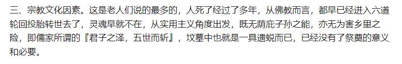 民间传说为什么荒坟不能去祭拜? ![]() 民间传说荒坟不能祭拜,其实民间对于荒坟并没有这样明确的传说,估计也是因为现实中大家也不会没事找事去给荒坟祭拜,荒坟指的是找不到坟主人或者坟主人后代没有祭拜打扫坟墓,常年以往坟墓野草纵生,坟墓塌陷,不仔细观察都看不出来是坟墓了,这样的情况不多,荒坟的主人要么是经历了战争,灾荒,要么就是家族衰败,无后人了。而民间会传出荒坟不能祭拜的传说多半是以下几点原因。 ![]() 会想到去祭拜荒坟,首先他的心态不是无聊就是戏挑,对于荒坟虽做出祭拜的动作,但言语挑衅,态度傲慢,并无尊敬之心,这样对待荒坟,就是作死之举。 ![]() 荒坟之所以成为荒坟,在于那些残酷的环境以及落败的家族,荒坟中的逝者是冤魂是饿鬼,更是怨气十足的凶鬼,去祭拜这样的魂,在古人看来是会招致祸患的。 ![]() 而在很多传记小说中,荒坟的魂多半是滞留人间不到命数不能投胎转世的魂,祭拜荒坟,很多时候是会遭到荒坟主人的回报,不管是报恩还是结怨,其结果都是有损活人寿命的事情。 一代人不上三代坟说法由来 ![]() ![]() ![]() 一代人不上三代坟意思是一个人只能给自己的父辈,爷爷辈上坟,再往上就不能去上坟了,否则会折寿。会对一代人,年轻人不利。这个说法的由来不明,但是很多地方都有这样的说法,其实也好理解,三代往上的祖宗如果不是很大的丰功伟绩位列仙班,那就是转世投胎了,上坟已经没有多大意义,而且搞不好还会惊扰了转世的祖先。 |