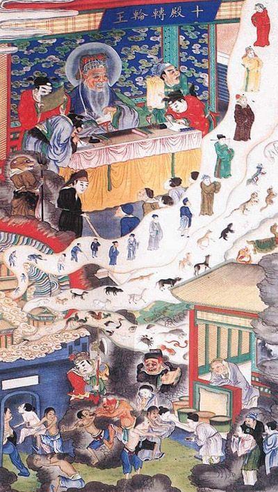 在佛教和道家的文化圈中,认为人死后是会变成鬼进入地府,参与轮回的。那些活着的时候行善积德的人,可以转世为更好的人家,相反无恶不作的人则会转世成畜生任人宰割。传说,人死后会先跨过鬼门关,这样你就成了真的鬼魂了,然后走上黄泉路,在黄泉路的尽头是忘川河,这你有著名的奈何桥,过了河就会来到望乡台,孟婆在这里等着你给你喝上一碗孟婆汤,忘记今生今世的所有,然后进入六道轮回,六道轮回分为:天神道、修罗道、畜牲道、饿鬼道、地狱道、人间道,根据你今生不同的修为,你会轮回入不同的道。