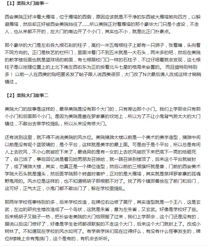 每一所学校每一届的学生,都会流传一些鬼故事,在校园里面发生的各种各样的鬼怪,也不知道是吓唬学生还是要营造恐怖神秘的校园气氛。但是西安美院的这个灵异事件好像特别的真实和恐怖,给大家深入探索一下西安美院真实灵异事件吧,其实隔着照片也是可以感知到一点点灵异的,尤其是这里的俯视图非常灵异。