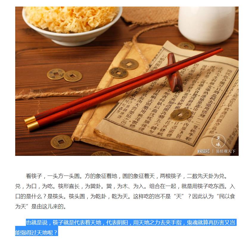 ![]() 传说中鬼上身中邪筷子夹中指可以驱鬼真假 在民间传言中,鬼附身这样的情况经常发生在那些八字比较软的人身上,或者是久病身体虚弱的人身上。鬼附身的表现有很多种,有的人会整日没有精气神、昏昏欲睡,还有的人会出现和以往大不相同的行为、或者是说一些非常奇奇怪怪的话。 关于驱鬼的方法,民间流传了很多种,其中有一种驱鬼的方法是用筷子夹住中指,这里所用的筷子是红筷子,民间是这样流传的,但是至于这种方法是不是真的能驱鬼我门我从考证。 筷子夹指头驱鬼主要是因为筷子一头方一头圆,代表了天地方圆,筷子即天地,鬼也在天地之中,当然不如天地的威力。 ![]() 具体夹中指的方法图解 之前网络上曾经有过筷子夹中指驱鬼的图解,下面一起来看一下图中的位置,通常情况下是用红筷子夹住中指上“后头”这个部位,也就是中指的第二个关节处。关于这种驱鬼的方法毕竟只是民间传言,大家也不要盲目的信从,凡事还是要先从科学的角度去思考。 ![]() |