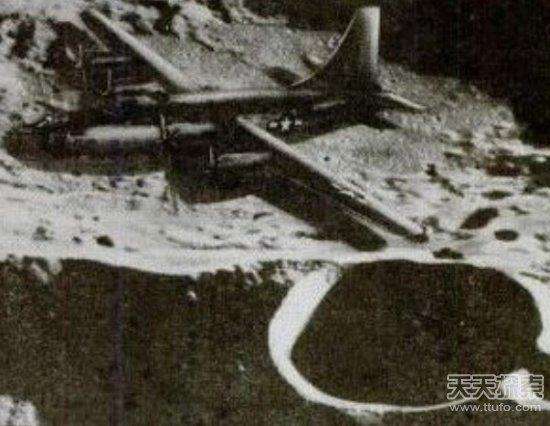 1987年3月苏联人造卫星从月球背面发回的传真照片显示,有一架“二战”时期的美制老式轰炸机,停放在月球的陨石坑边,它的表面虽然部分被太空坠落的陨石毁坏,但大部分仍然保持完整。照片还显示出整架飞机表面标满了一层绿色物体,好像它刚从海底被打捞出来,机身上长满了青苔,该机机翼和机身上的美国空军标志,经放大后皆清晰可见,有人推测可能是外星人掳到月球上去的。苏美两国科学家曾打算成立一个特别小组进行秘密调查,可是苏联卫星于1988年7月再次扫瞄该地时,飞机已神秘消失,暗中监控的美国专家承认该架飞机是7月22日从月面失踪的。