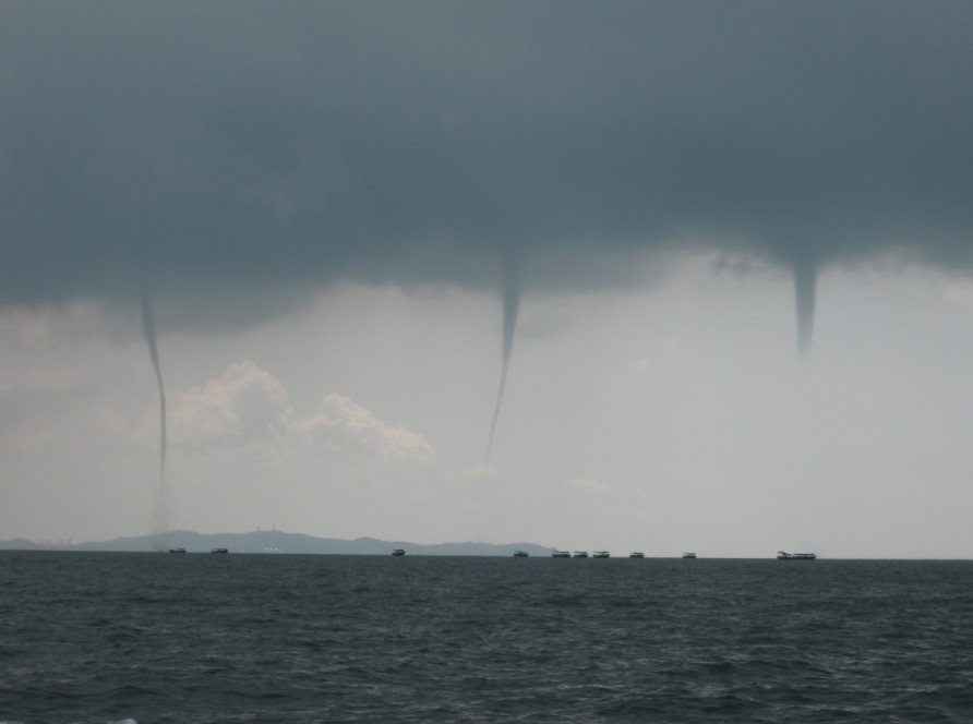 第三是上升气流和下沉气流间的切变要大,也就是说两者气流方向相反,各自的速度要大,才能形成强切变。中国南海很具备产生水龙卷的条件,特别是西沙群岛,在夏秋季水龙卷经常出现。