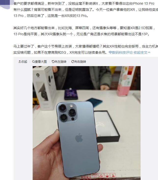 “XR改”意思是指iphoneXR的改装版,因为iphone多年以来既不换磨具也不改尺寸,XR这一型号发布以来,堪称是“万物皆可改”,iphone11、12、13等等都能用XR改,于是许多XR的用户,就会通过一些简单的小配件,将自己的手机改成其他机型。