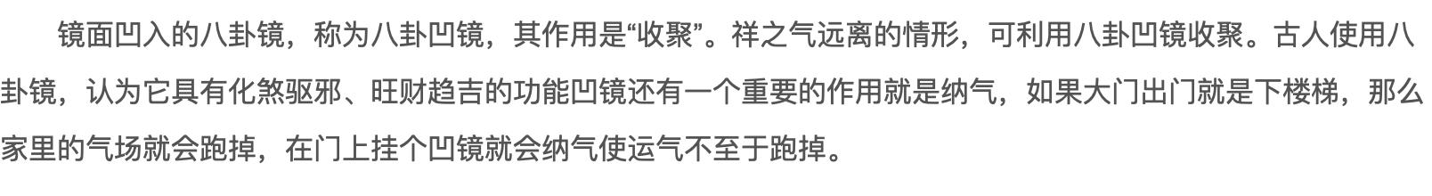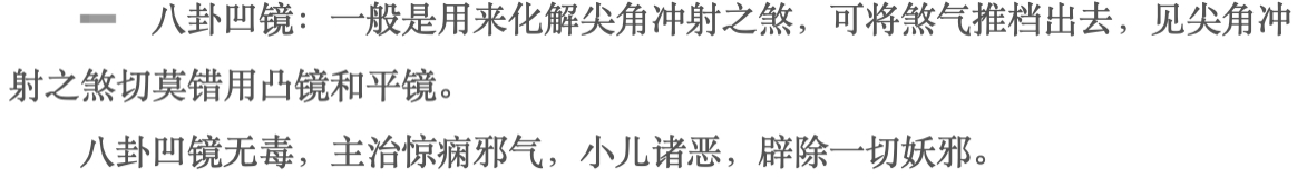 ![]() 在人们的日常生活中,常见的煞气可以分成气煞、形煞和光煞等,其中形煞是最普遍的,而形煞包括穿堂煞、路冲煞、尖角煞、开口煞、刀刃煞、穿心煞等,每种煞气的化解方法也不一样,如果不是用正确的方式化解的话,很容易是火上浇油,那么凹镜一般能化解什么煞气?除此之外凹镜还有什么用途? ![]() 首先我们先来了解一下凹镜的作用和用途,在风水学中,凹镜一般指的是八卦凹镜,八卦镜有凹镜和凸镜之分,凸镜的主要作用是“分散”,而凹镜的主要作用就是“收聚”,比如说收聚吉祥之气等,也可以让邪气不能入侵,因此一般在家中大门或者窗户上使用凹镜,有聚拢财气等作用,还可以用来镇宅、驱邪和巩固人体精气。 ![]() 凹镜对形煞的作用是最大的,尤其是形煞中的尖角煞,尖角煞指的是建筑物的造型有很多边角,这些尖角如果正对着大门或者窗口的话,就会形成尖角煞,会让人的身体容易出现问题,所以需要化解煞气,而八卦凹镜就可以用来化解尖角煞,除了尖角煞外,凹镜还能化解直冲煞、角煞和枪煞等。 ![]() |