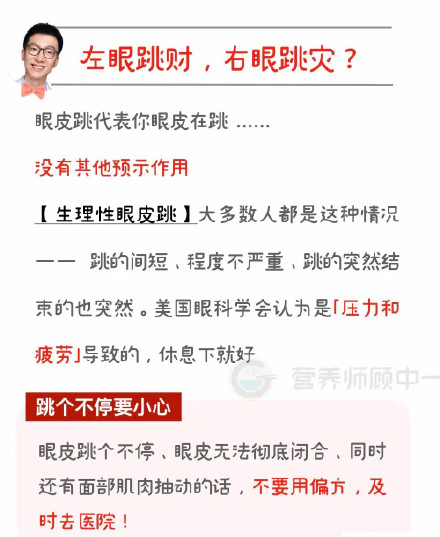 ![]() 左眼跳财,右眼跳财真正由来是什么呢?在内经里有一句话叫一切。抽搐、颤抖,眩晕接发于肝。所以我们不论是脸上的肌肉的这个颤动和抽搐,还是我们的眼皮。跳实际上都是肝血阴虚,肝阳上亢,阴虚,然后肝血阴虚,肝风内动才会导致我们的。表情上。脸上的肌肉颤动啊,眼皮跳。那么这句话里说,左眼和右眼,那么左为肝,右为肺,左肝主义人的情绪,右肺主义人的理智。那么一旦左眼跳的时候,那么代表。这个人他的肝木会出问题,那么肝木代表感情,那么这个人对自己的感情往往会容易泛滥,然后在性格上。脾气上容易脾气变大,并且同时破坏力也大。这里边说的左眼跳财并不是来财了,而是说到手的钱财我拿不到手。传统文化当中,脾胃图主材。而。肝胆木薯获取钱财,一旦左眼跳的话,肝阳上亢,那么我就会无法获取我该得到的财产。咱们再看右眼跳灾,右眼左肝右肺右肺属金,金代表节制,代表规则。那么一旦右眼跳的时候,肺气不足。那么我们就会对自己的行为无法节制,同时带来破财或者说官司。或者与人发生争执。 ![]() |
