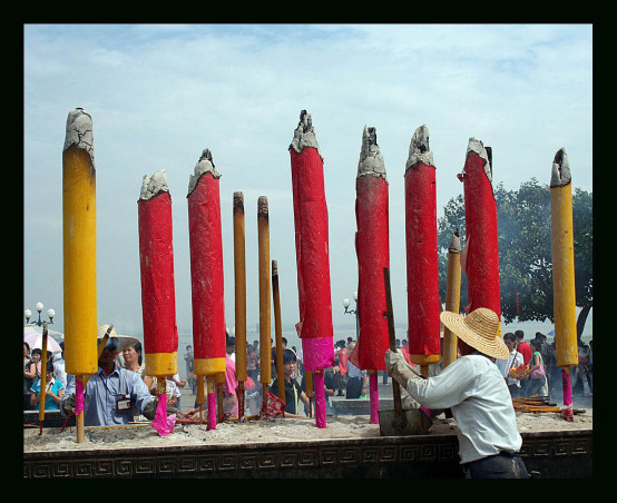 烧高香的具体做法和注意事项: (1)选三柱(支)香,不要断香。 (2)点燃香(点燃后若起明火,可左右摆灭,不能用口气吹灭)。 (3)面对神像,双手举香(与额相齐),躬身敬礼。 (4)用左手上香,三柱香要插直、插平,间隔不过一寸宽(以表示寸”心)。若是道徒还要默念《上香时咒》:“常焚心香得大清静”。(若在一个神殿里供养奉有多尊神像,先上正位,再上左位,次上右位,后两者各上一柱香,仪式相同。) (5)上香讫,即行叩拜礼。正所谓烧香拜神也。 ![]() 什么样的人不能烧高香 原则上人人都可以烧高香,佛菩萨对一切众生都是慈悲护佑的,只要信佛就可以去拜佛烧高香。 ![]() 不过,排斥佛教、诋毁佛教、不敬三宝的人就不要去。因为这类人到佛像前就心生恶念、对三宝起嗔恨之心,这会给他自己带来极大的不祥,种下罪恶的种子,今后会得到无穷无尽的苦报。所以这类人不可以去拜佛烧高香。 |