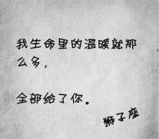 3.双子座 双子座喜欢一个人可能不会整天和对方在一起,而是若即若离,不是因为不爱, 而是太爱不知道如何相处,内心时刻在天人交战,要不要见面,见面了会不会太频繁?新鲜感是不是很快就没有了?可是一旦对方不联系他们了,双子座便会开始猜疑是不是这段感情出现问题了。 4.巨蟹座 巨蟹座表达情感的方式就是做对方的保姆,把恋人当孩子一样疼爱,照顾的无微不至,会将所有的爱意毫无保留的付出,然后期待恋人的回报,在情感上可能会比较敏感,占有欲强,很容易吃醋,一旦发现对自己不利的状况就开始闷闷不乐,被恋人所伤害,面临分手的危机,巨蟹座会变得歇斯底里。 5.狮子座 狮子座的人表达情感可谓十分的傲娇,别扭,总是爱用相反的行为去表达自己的感受,明明喜欢对方,却顾及面子问题,装作很矜持,很骄傲的样子,时刻给别人一种:老子看上你只是看的起你,你要识相的感觉。而一旦关系确立,狮子座表达情感的方式就会大变样,整天秀恩爱,跟别人说自己的恋人多优秀,自己有多幸福。 ![]() 6.处女座 处女座是一个重情重义的星座,他们喜欢一个人就会全方位的为对方着想,希望对方可以变得更好,但有时候方法可能会有点奇怪,最典型的就是,处女座对于越熟悉,越亲近的人,他们的嘴就越毒,出发点自然是好的,可是常常也会令双方闹的不愉快。 7.天秤座 天秤座的人是非常会说甜言蜜语的,当他们喜欢上一个人一定会时刻的想要告诉对方,自己有多么的爱你,一日不见就如隔三秋。本来就温柔的他们,在和恋人说话时,会变得更加的肉麻,眼神宠溺的快要将人融化。 8.天蝎座 虽然天蝎座在外人面前是霸道总裁,成熟稳重,深沉内敛,可是在爱人眼里他们就是一个幼稚的小孩子,爱撒娇,爱卖萌,反差巨大,希望无时无刻都可以和对方腻在一起,本来面瘫无表情的脸,在见到恋人之后的下一秒,瞬间就软化了,那一瞬间仿佛整个世界都甜蜜起来了。 9.射手座 射手座表达情感的方式是狂热的,狂热到冲动,不可自拔,喜欢一个人就会立马表白,绝对不会藏着掖着,会兴奋的在深夜里给那个人发短信,打电话,迟迟不肯挂断,会迫切的希望了解对方的一切,发誓要用自己这颗炽热,真诚的心融化对方,在射手座看来,人生就要疯狂,就要勇敢无畏。 ![]() 10.摩羯座 跟摩羯谈恋爱,就算同城也能谈出异地的感觉,明明是热恋期,却好像已经开始过老夫老妻的生活了,你热他就冷,你冷他更冷。摩羯不喜欢对一个人表现出长久的热情,不喜欢自己的心思被一眼看穿,所以总是藏一半做一半。十分的敏感,防备心很重,内心戏超多,明明在乎的不得了,偏偏装的跟没事人一样,嘴上打死不说,心里却永远比你想象的更爱你。 11.水瓶座 水瓶座表达情感的方式实在让人捉摸不透,看着和平常貌似没什么两样,唯一不同的是,在相处的过程中,总是莫名其妙就消失个几天,其实如果真正了解他们的人就应该知道,此时就不要再去打扰了,给他们独立的空间,自己则是该干嘛干嘛,不然的话,水瓶座可能会因为受不了束缚而彻底逃离。 |