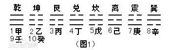 卦有八个而数有十数,故必有两卦多二个数。按自然顺序为乾坤两卦。天干和数字皆为记数符号。