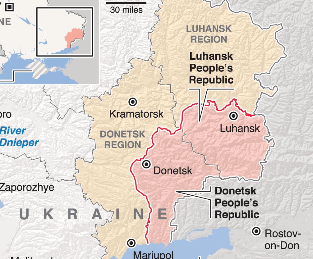 俄罗斯总统已下令俄罗斯军队进入顿巴斯地区执行“维和任务”,此前,俄罗斯宣布承认顿涅茨克人民共和国和卢甘斯克人民共和国独立。媒体上说的“顿巴斯地区”实际指的就是顿涅茨克州和卢甘斯克州(部分区域),下面是他们在地图上的位置: