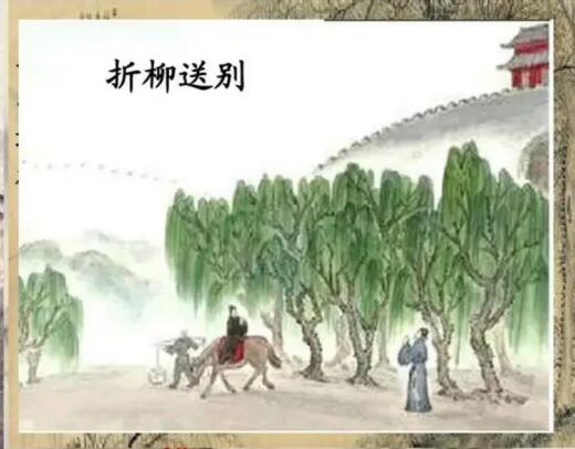 李白有一首诗是这样写的,“谁家玉笛暗飞声,散入春风满洛城。此夜曲中闻折柳,何人不起故园情。” 在唐代时,生活在长安一带的人,在与好友分别时,会折柳枝相送。长安的灞桥长堤,是出入长安的必经之路,很多人在此送别,所以每隔几米,都会有一株如丝绦般的垂柳,人们在送别时,就会折柳相赠。在折柳送人的现象产生后,众多的文人墨客又对柳树加以拓展升华,使得折柳惜别的意味更加浓重了。