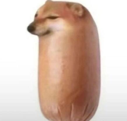 “香肠狗”出自一组柴犬P成的表情包,里面有面包狗、煎蛋狗、卷饼狗、香肠狗等等。