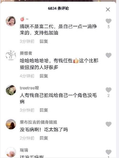 ![]() 那么陈腾跃为什么这么有钱呢?他1995年11月16日出生,现在还不到30岁,就可以自己投资一部剧,难道是富二代吗??目前来看,他并不是富二代,钱都是自己赚的,他大学一年级开始创业。 ![]() 除了经历励志,陈腾跃还有很多优点,给大家盘点一些: