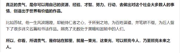 贵气是一种怎样的气质 贵气是一种难以言说但是身有所感的气质,可能说不上来这个人身上有什么值得敬仰的东西,甚至仅仅是一面之缘,初次见识的陌生人,但是她站在那里你就觉得她出身不凡,气质高雅,风度适人,宠辱不惊,遇事不乱,无畏无惧,安定自若,身姿端庄而仪态雅致,让人不由自主的产生臣服敬仰赞美模仿之意。 景甜的贵气还是有些流于外表了的,让人一眼望之便觉优雅高贵,真正的贵气更应该是沉于心境,源于世家,现于言行,游于举止,展于成就,真正的贵气是高贵的内心,崇高的理想,为人类的创造价值为心无旁骛,努力奋进。为自己的理想而发光发热。 ![]() 贵气和气质有什么区别 贵气和气质有很大的区别,贵气是气质的一种,更是气质中最难得最上乘的一种,气质有很多种类,各种在性格上面有自己的特点的人都可以称之为有相应的气质,而贵气则不同,它特指一个人的气质是高贵优雅,容貌大气端庄,行为举止得体有度,为人处世进退有礼,贵气是家世教养出来的,是后天刻意培养的,更是知行合一实践出来的,贵气最是社会精英人士的形容。 ![]() |