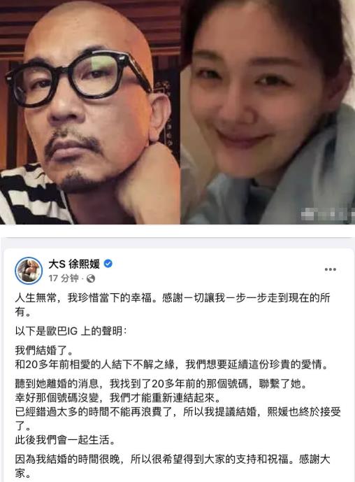 大S闪婚了,在3月8日妇女节的这一天,离婚106天的大S迅速宣布结婚,对象是她20年前的男朋友,韩国友人具俊晔。这是一则,怎么看都像洋葱新闻的真新闻。具俊晔说,两个人的联系,是因为他听到了大S“离婚的消息”,“找到了20年前没变的号码”。两个人因为有过“不解之缘”聊了起来,接着他求婚,大S接受了,所以两个人获得了“重新联结”。