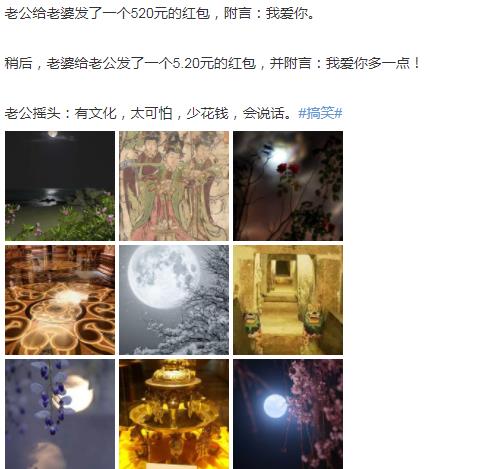 ![]() 往往发5.20红包的多是已经结婚的老夫老妻,可能是在对方软磨硬泡之下,非要发个红包,于是乎就来了一个“5.20”,毕竟520元的红包,确实很多人“承受不起”。 ![]()