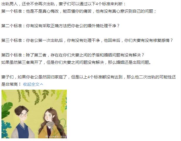 ![]() 也有人说,婚外情只是玩玩而已,不会对自己的家庭造成伤害,但是这种关系本来就是错误,是对婚姻的不忠,因此很多家庭都毁在了婚外情上,甚至有人头脑发热,为了婚外情放弃了婚姻和家庭,有句话叫做“且行且珍惜”,但真正能做到这点的,却是寥寥无几,那么婚外情真的是命中注定的吗? ![]() 婚姻是一件很神圣的事情,忠诚是婚姻的底线,如果连这点都做不到的话,这样的婚姻还不如不要,所以婚外情从来都不是命中注定的,而是人们寻求刺激、耐不住寂寞的托词,他们觉得自己陷入婚外情是身不由己的,只是一块遮羞布而已,所谓的命中注定,只是推卸责任的借口,这是一种不负责任的表现。 ![]() 而在现实生活中,出轨对于另一半来说,都是一种背叛,所以对待婚外情,需要及时止损,而其中最有效的方法,就是断了和婚外情对象的联系,从此彻底放开手,还有就是勇于面对自己的错误,越是藏着掖着,越是容易暴露,还不如摊开来说,这样对另一半才公平,否则到了瞒不住的那天,造成的苦果就越大,最重要的是一定不要吃回头草,因为婚外情很容易让人沉迷,所以一定要说到做到,绝不能再有这样的事情发生。 ![]() |