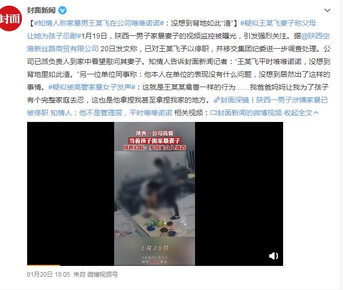 最近几天,西安连续出现两起丈夫家暴妻子的事件,让“家暴”这个话题再次冲上热搜。特别是本次事件中的家暴男“王某飞”,平日里在单位竟然是一个唯唯诺诺的人,但是没想到回家后就化身成了妻子和孩子面前的“大恶魔”,不管孩子是否在身边,对妻子拳脚相向,非常恐怖。