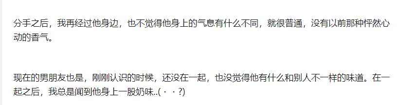 看《花千骨》的时候,听小骨和紫熏上仙斗香那一段,小骨讲到师傅的枕头香,很多网友忍不住留言了,别人的男朋友还有枕头香,自己的男朋友只有臭口水。但也有网友表示自己的男朋友的确是有一种好看的味道,只是别人却闻不到,这样看来男人体香是只有个别女的能闻出来,是这样吗?这种体香会消失吗?