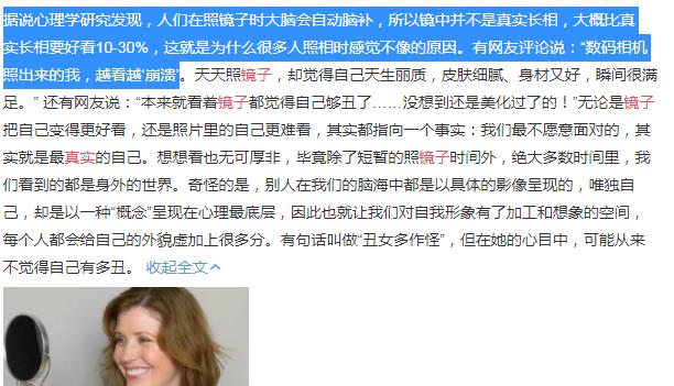 镜子对一个女性来说是非常重要的,她们需要通过镜子来扎头发、化妆和挑选衣服,很多人觉得在镜子中的自己,长得还是可以的,但是在别人的镜头下,或者照片中,就会显得特别不好看,和镜子中的自己判若两人,据说有研究表明,镜子中的自己比现实中要好看一些,那么这是什么原因呢? |