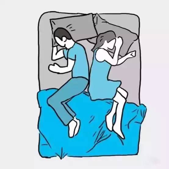 如果你和你的伴侣现在正在背对着睡觉,你们中间还有看得见的空间,那么,先不要害怕,这可能是好事哦。专家表示这种背对背没有接触的睡姿可能显示你们之间亲密但又独立。
