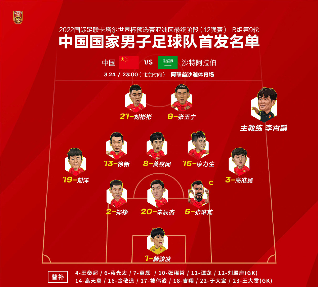 3月30日,世预赛12强赛,国足迎战阿曼。3月29日德国转会市场网站管理员朱艺透露了国足23人大名单,吴曦顶替受伤的金敬道,其余人员不变。其中在门将的安排上,是:“1-颜骏凌、12-刘殿座、23-王大雷”。在以前,球迷对颜骏凌有很多批评的声音,最大的一个批评就是“摄政王”的梗了,这里的“摄政王”是“射正亡”的谐音梗,就是对手射的正当了,颜骏凌基本扑不出去,别人进球了,这不就“亡”了吗?