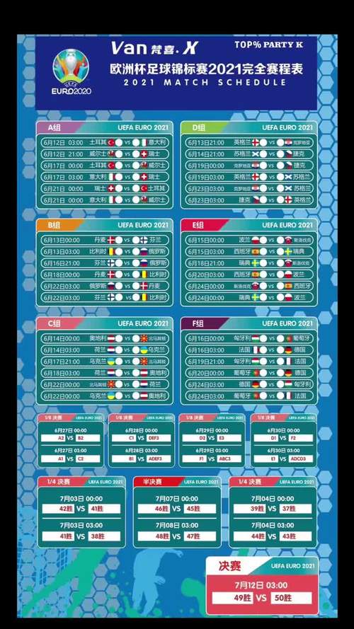 欧洲杯直播比赛时间表 欧洲杯作为世界范围内备受瞩目的足球赛事,一直以来都是足球迷们最为关注的盛宴之一。今年的欧洲杯将于6月11日至7月11日在13个城市的不同场馆内举行。这场比赛将集结来自欧洲不同国家的顶级球队,其中包括世界著名球队德国、法国、葡萄牙和意大利等,让球迷们期待已久的比赛终于要来临了。 现在,欧洲杯的各个小组的分组情况已经确定下来,比赛日程也已经发表。下面将为大家详细介绍欧洲杯直播比赛时间表。 6月11日至6月23日的小组赛第一轮至第三轮比赛,将是球迷们最为期待和热衷的一阶段。虽然本次欧洲杯是在疫情肆虐的情况下举行,但这并不会影响球迷的热情和对足球的热爱。在这个阶段内,球迷们将能够看到各个球队通过精彩的比赛,选出小组第一名和第二名,晋级到16强阶段的比赛。 6月26日至6月29日是欧洲杯的16强阶段。在这一阶段,球迷将看到每个小组的前两名球队在淘汰赛中展开激烈的较量,争取晋级到四分之一决赛。这是比赛的重头戏之一,也是球迷们非常期待的比赛,因为在这个阶段,每个比赛都是成败的关键。 7月2日到3日是欧洲杯四分之一决赛的阶段。在这个阶段,所有球迷都将看到每个小组的前两名球队进行淘汰赛,争夺最终晋级到半决赛的席位。这个阶段的比赛将更加刺激和紧张,因为每个小组都已经经过了3轮非常惨烈的比赛,所以球队的状态和实力都会有所恢复和提升。