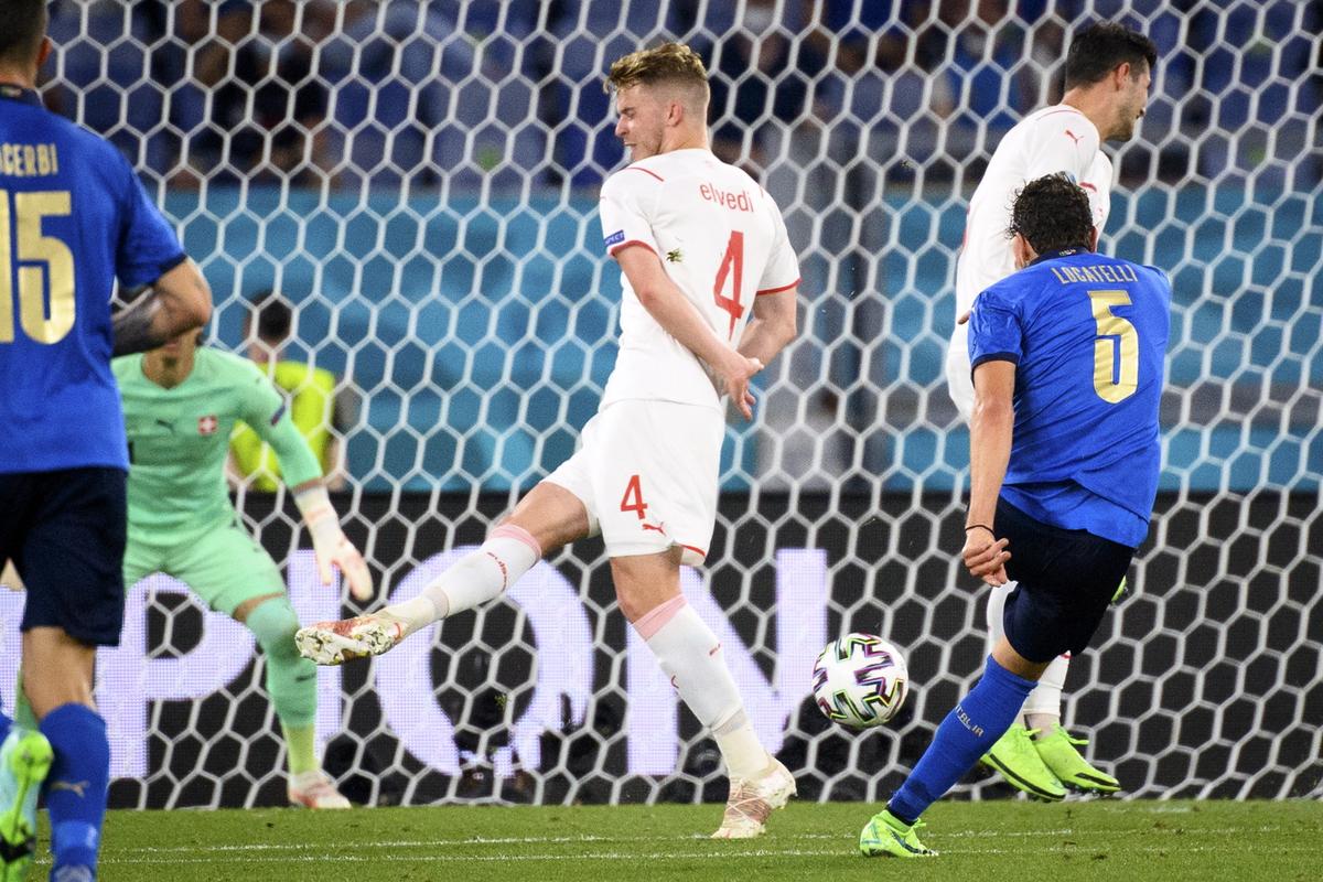 直到下半场开始后,意大利队才逐渐稳住防线,打出更为稳健的进攻。他们通过快速的传球和突破,控制了比赛的节奏,迫使瑞士队在中场附近挤得老远。防线持续高压,加上快速的反击,最终在第60分钟,意大利国脚伯纳代斯基接队友传球后倒钩腰背部,顺利地把球打进了瑞士的大门,成功为球队攻入了一球。 接下来比赛,瑞士队进攻加强,不时发起打门,但都被意大利门将唐纳鲁驾驭。赛事至终场哨响,最终,意大利队凭借着伯纳代斯基一粒进球,以1比0获得胜利,也提前锁定小组赛出线资格。
