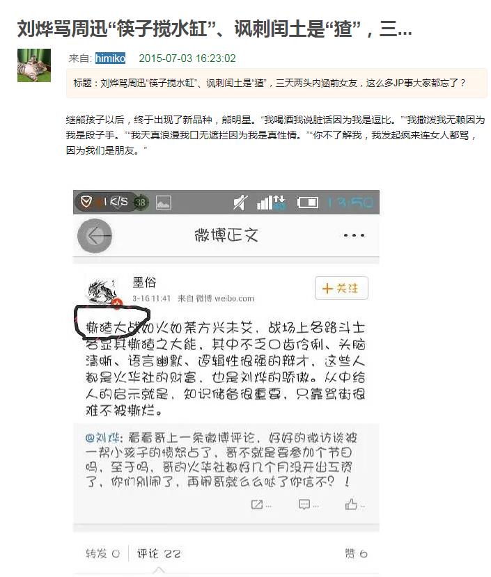 这个是来源于刘烨骂周迅的一段话,当年两个人谈过恋爱,不知道为何后来反目,刘烨还曾经内涵过周迅是“筷子搅合水缸”,至于筷子是什么、水缸是什么,大家可以脑补一下,咱这里就不多说了。不过刘烨作为周迅的前男友,这么说周迅感觉很不地道!