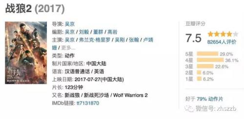 目前,豆瓣电影对于《战狼2》的评分为7.5分,有超过8万人参与评价。有业内人士认为,在影片的口碑效应下,《战狼2》票房还将持续增长。