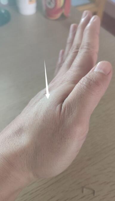 合谷穴,也就是咱们常说的“虎口”,找合谷穴有一个小技巧,将大拇指使劲往里收并拢,然后在手掌背面会鼓起一个肌肉包,肌肉包最高的地方就是合谷穴,也就是虎口的准确位置。